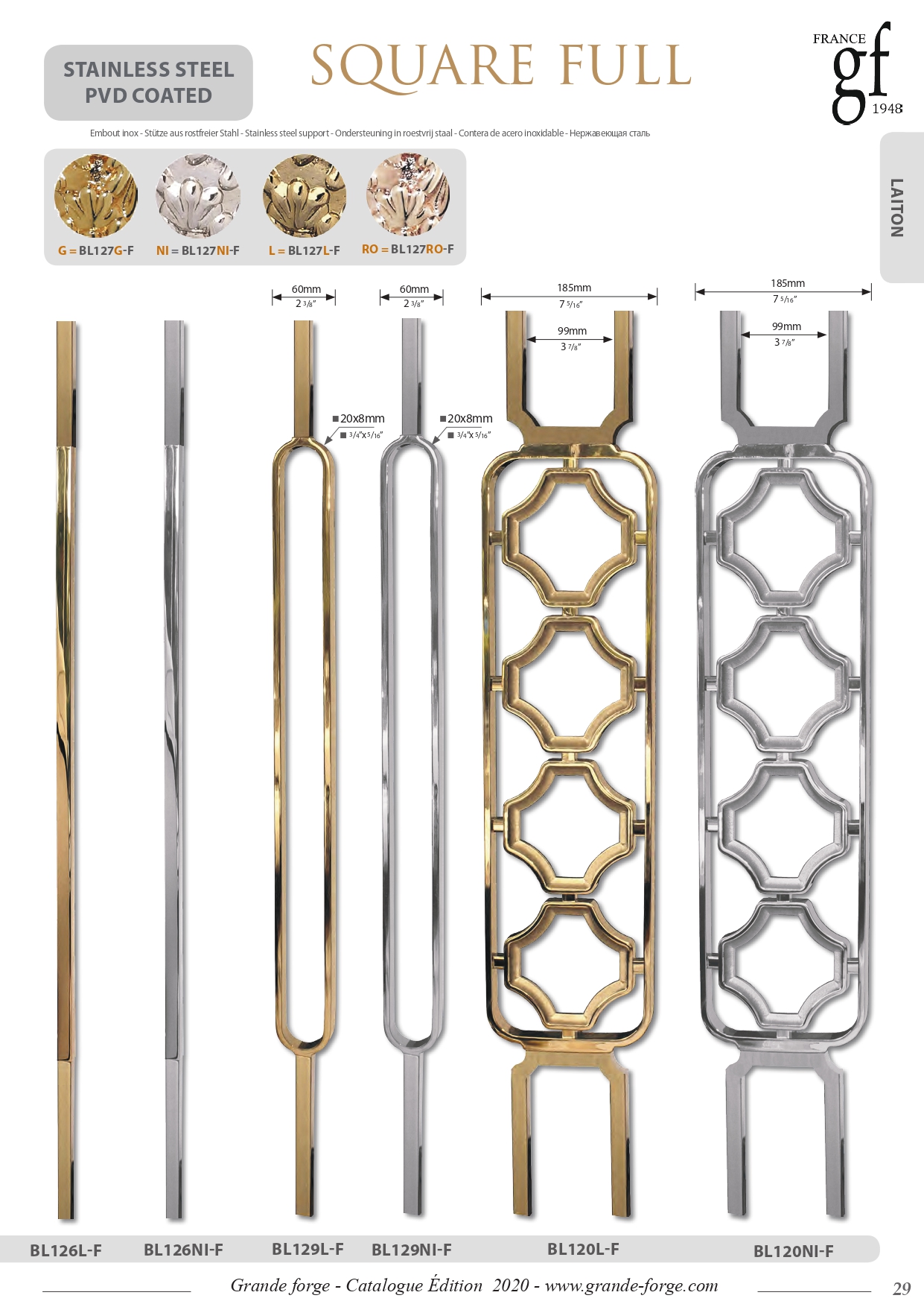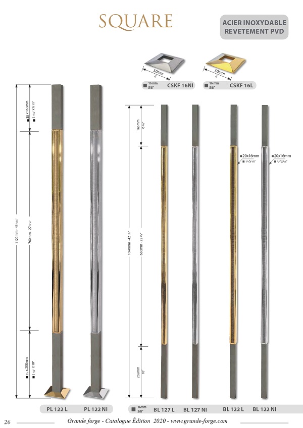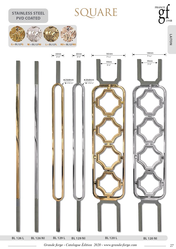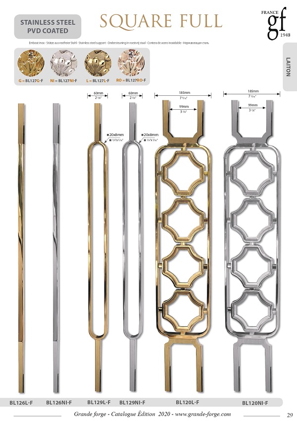 Можливий варіант виготовлення всієї балясини з нержавіючої сталі з наступним PVD покриттям. При стандартному замовленні "ніжки" балясини виконані з низьковуглецевої сталі