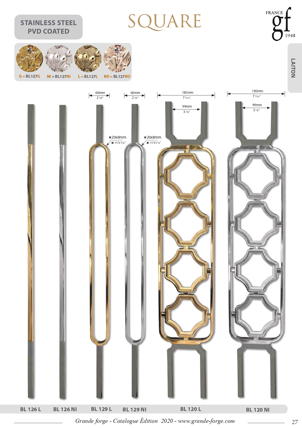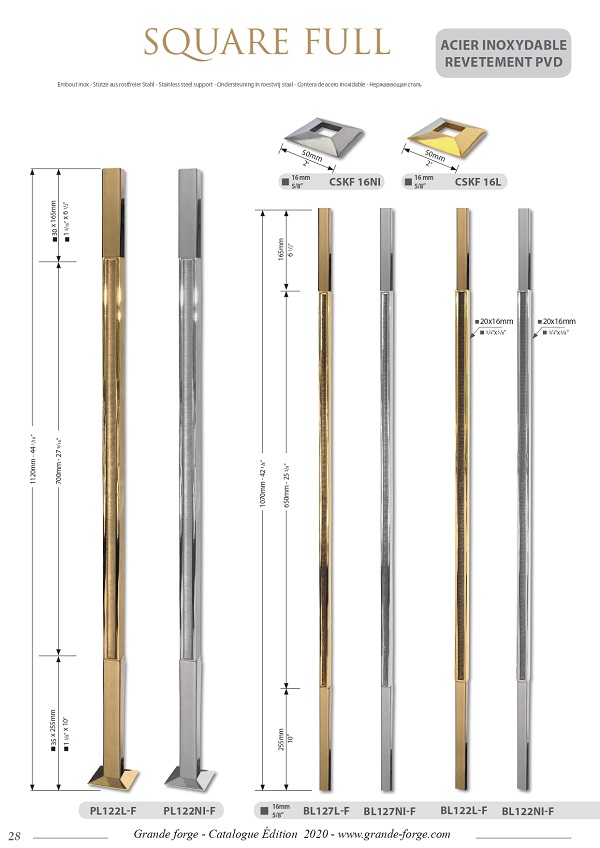 Колекція Square вироблена з нержавіючої сталі та може мати наступні види PVD покриття: - золото (G) - рожеве золото (RG) - латунь (L) - нікель (Ni)