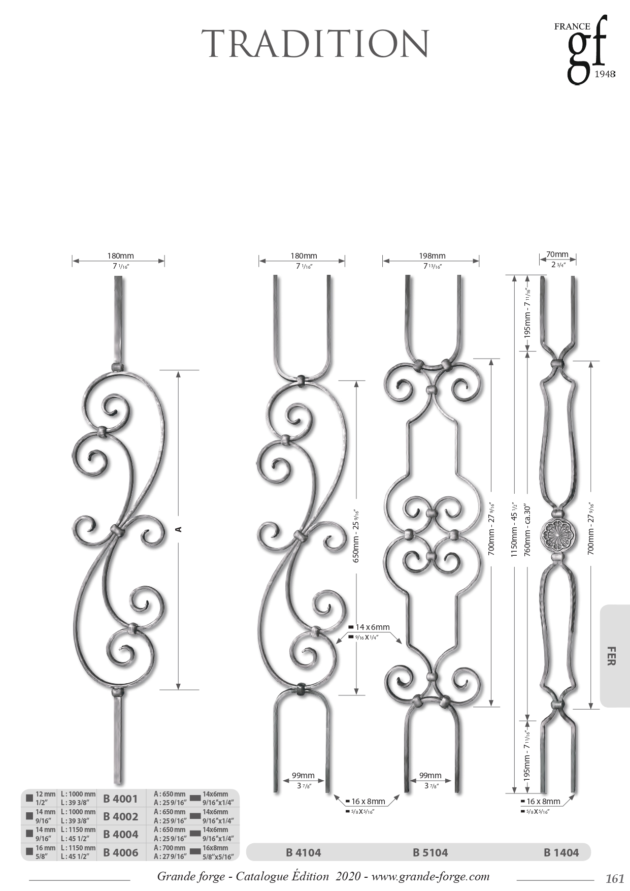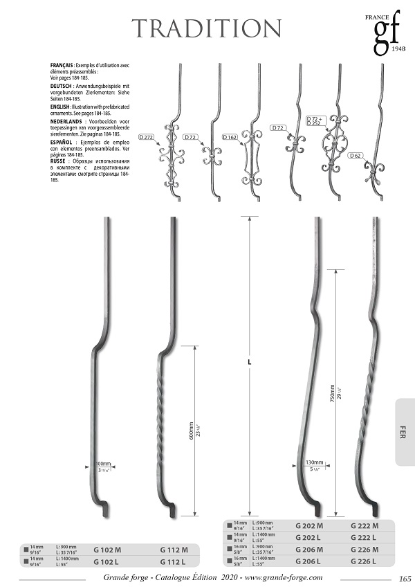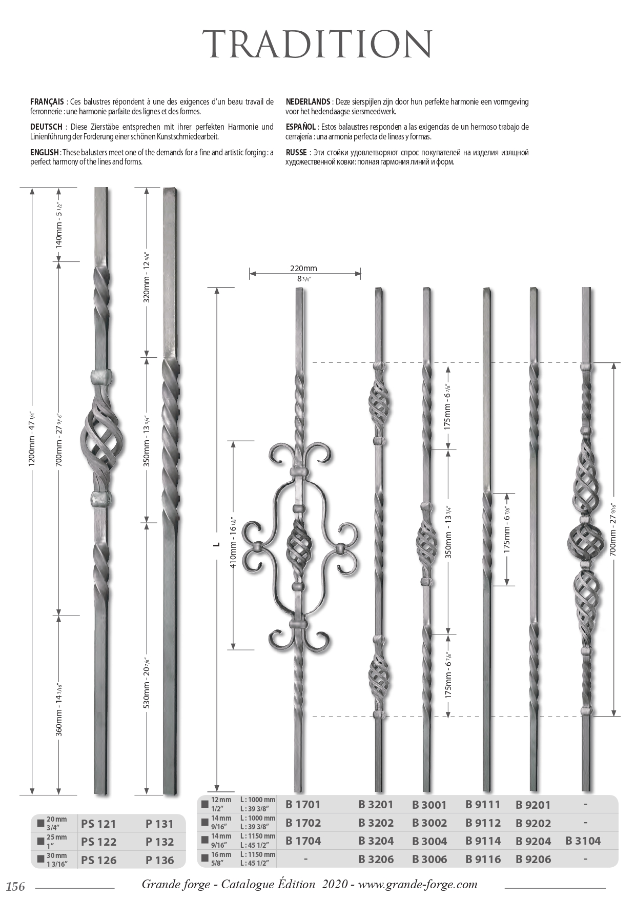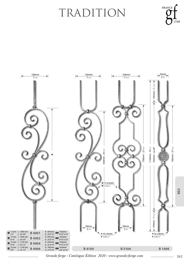 Колекція Tradition це - велике різноманіття форм та обробки металу, ковані, кручені, штамповані з орнаментом та без. Комплектуючі поставляються у нефарбованому вигляді.