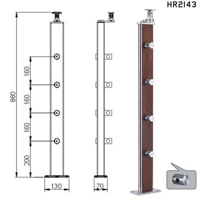 • Балясина нержавіюча сталь + вставка з деревини
