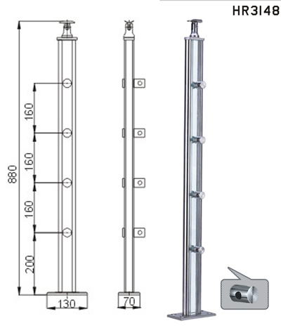 • Балясина нержавіюча сталь + вставка з акрилу (прозора)